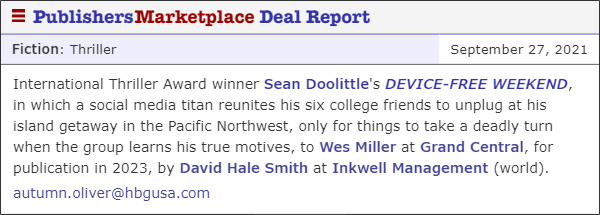 Device-Free 23 Posted on October 2, 2021 by seandoolittle A bit of news about the next book, forthcoming from Grand Central Publishing in 2023: Related